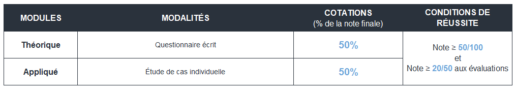 - Contrôle des connaissances appliquées : 03h00